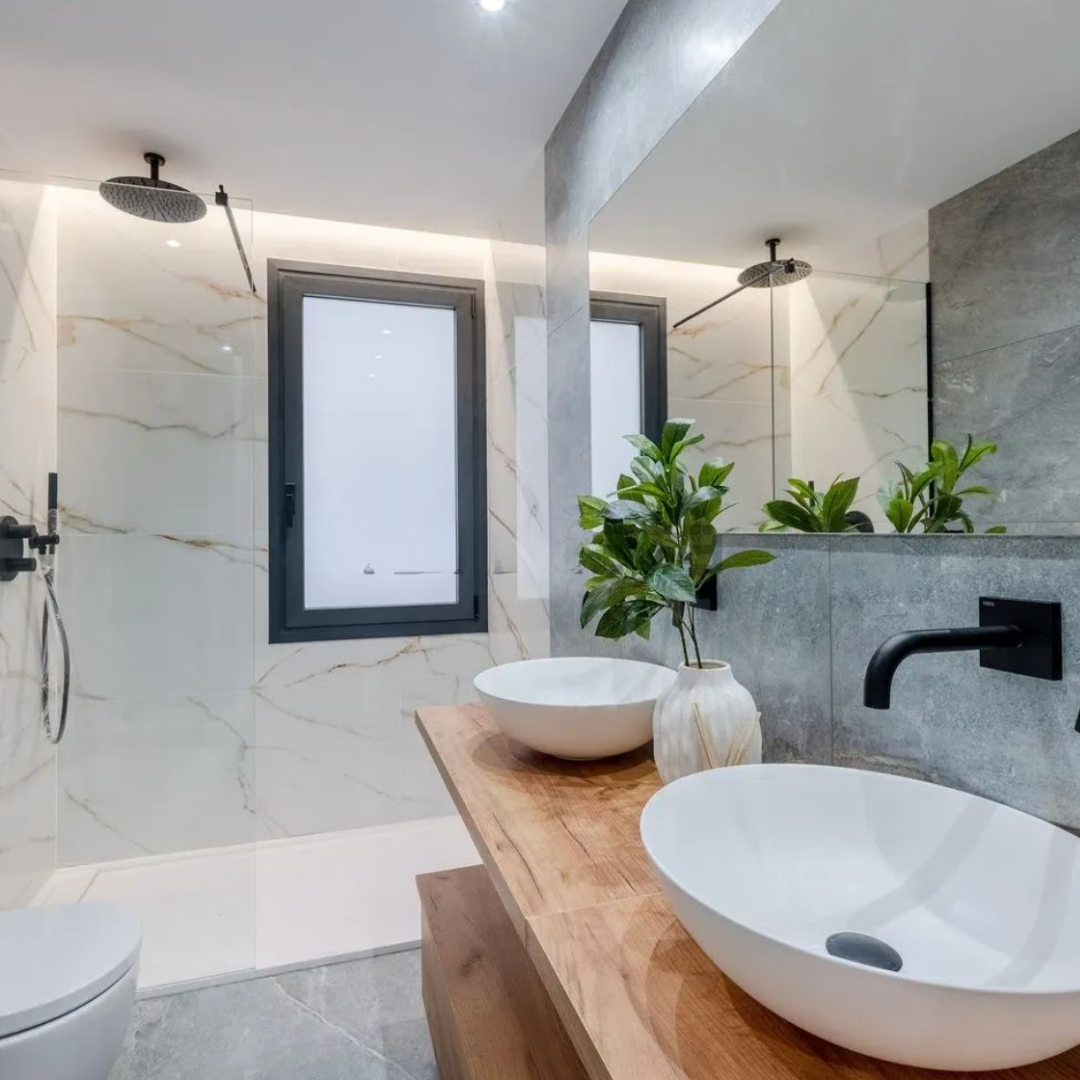 Los tres dormitorios adicionales están perfectamente distribuidos, con armarios empotrados y un aprovechamiento eficiente del espacio. Uno de estos dormitorios podría adaptarse como despacho o habitación infantil, ofreciendo flexibilidad según las necesidades del propietario. Comparten 2 baños completos, con los mismos acabados contemporáneos y materiales de alta calidad que el baño principal, garantizando una estética armoniosa y elegante en toda la vivienda.